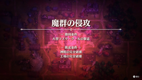 クリエイションパート中に発生する魔群の侵攻では迫りくる魔物から街を守るため、人々の力と神の力を総動員して戦います。街の周囲のあちこちに魔物の巣が現れ、さまざまなルートで魔物が迫ってくるのでリソースを適切に活用して防衛しなければなりません。