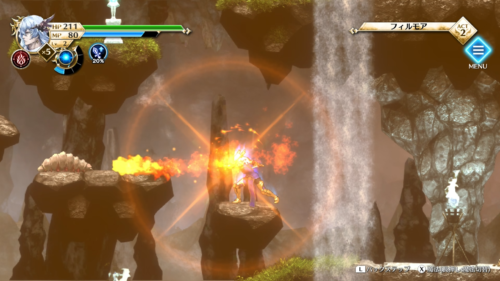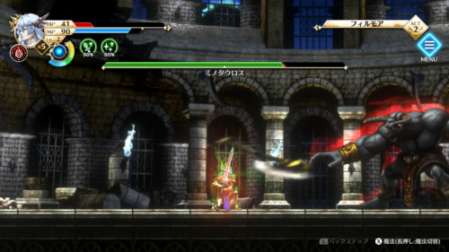 アクションパート(ACT1、ACT2、魔物の巣)は神が剣と魔法を使って戦う2D横スクロールアクションとなっています。スーパーファミコンの原作ではアクションパートの難易度がかなり高かったらしいのですが、リメイク版ではマイルドになっている印象です。