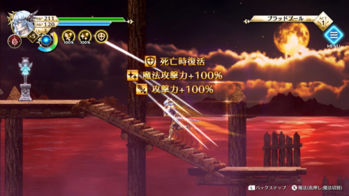 アクションが苦手な人への救済措置として、魔力結晶によるパワーアップシステムがあります。敵を倒したときなどに魔力結晶を入手することができ、それを集めることで攻撃力アップなどの恩恵が得られます。パワーアップは最大で5段階まであり、最終段階になると攻撃力+100%、魔法攻撃力+100%、死亡時復活と効果は絶大です。ステージの敵を片っ端から倒していけば最終段階までパワーアップした状態でボス戦に挑めます。