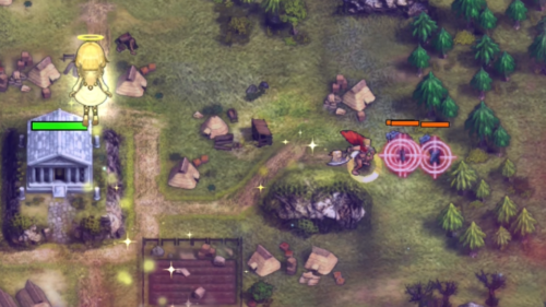 クリエイションパートでは神であるプレイヤーは人類の発展を見守ることになります。プレイヤーは天使を操作して奇跡の力で邪魔な樹木や湿地を取り払って人々が生活できる土地にしたり、街を発展させる方向を指示したりといったことを行う必要がありますが、あとは勝手に街が作られていくので楽ちんです。