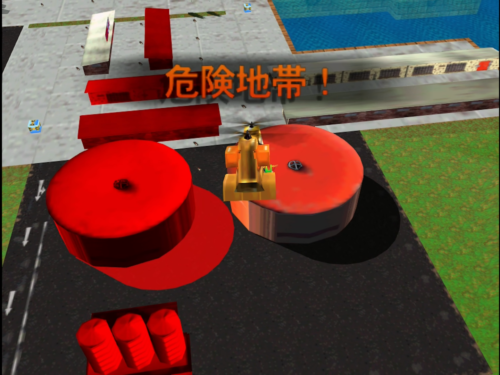 本作の操作はシンプルではあるものの、車両タイプのマシンはラジコンのような操作感覚になっており多少慣れが必要かもしれません。基本的な操作方法は、スティックの左右で行うハンドリングと、前進ボタンと後退ボタンを使って移動します。しかしゲームの視点が見下ろし型になっており、画面上から下へ向かって走っているときはハンドルを逆にきってしまいそうになります。