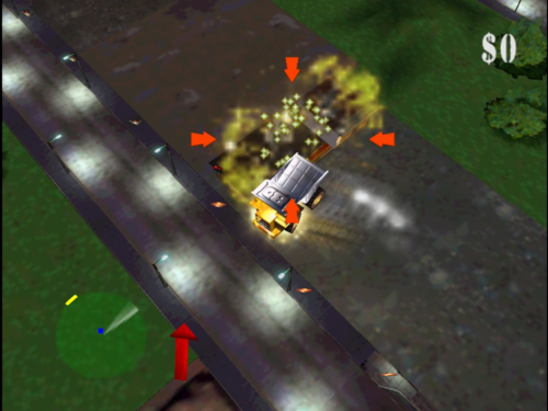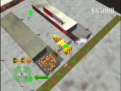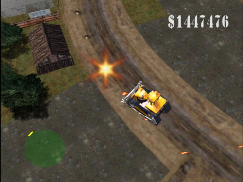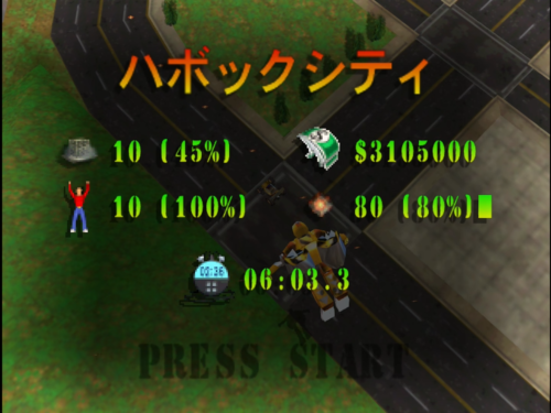 本作では様々な地域でミッションに挑むことになりますが、まず最初に行うのは制御不能になったトレーラーの進路を確保すること。ミッションの最中、制御を失ったトレーラーは容赦なく前進しつづけるので、先回りして進路にある建物などを急いで破壊しなければなりません。破壊の方法は使用するマシンによってさまざまですが、車体をぶつけたり、爆弾を使用したり何でもアリ。とにかくトレーラーがぶつかるまでの限られた時間で破壊すればOKです。