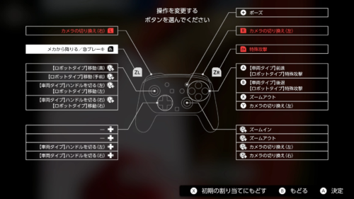 操作がややこしいと思う場合は視点変更してみるのも手です。右スティックの左右で視点を回転させることができるのですが、それだと前進(A)/後退(B)と同時に操作ができないので少し使いづらいかも。そこで私はボタン配置を変更し、L/Rボタンにカメラ操作を割り当てています。