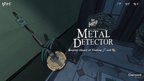 上で説明した鍵・宝石・コインはイメージとしてはリソースという感じですが、それらとは別に探索を進めるうえで役立つ様々なスペシャルアイテムがあります。例えば上の画像にある金属探知機を持っていれば、鍵やコインを入手しやすくなるといった具合です。スペシャルアイテムの効果は強力なので、間取り選択の方針を左右する場合もあります。
