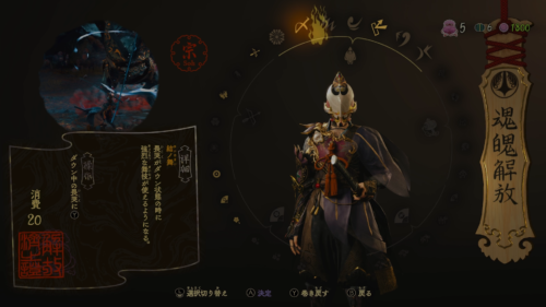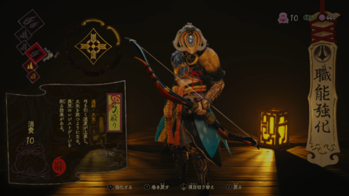 宗の強化内容は多岐にわたり、プレイヤーが自由に強化内容を選択することができます。強化によって宗が強力な攻撃を使えるようになったり、カウンター攻撃を使えるようになったりと、アクションの幅を広げることが可能です。強化するためには産霊(むすび)というアイテムを消費します。産霊の入手方法は様々ありますが、入手できる数には限りがあるので何を強化するのか非常に悩ましいところです。ですが強化した内容は自由に巻き戻してやり直すことができるので、気軽に色々な強化を試すことができます。
