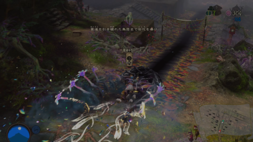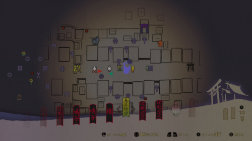 ステージ中には穢れた場所がいくつか存在しており、宗がそれら穢れを祓うことで結晶を入手することができます。またステージ内の全ての穢れを祓うことで報酬としてアイテムが入手できるので、ステージをくまなく探索して全ての穢れを祓いたいところです。しかもステージを探索することで地形の理解にもつながりますので、戦略を検討するのにも役立ちます。