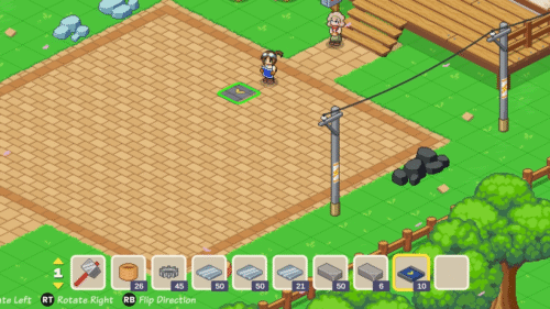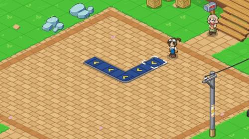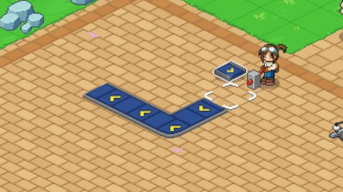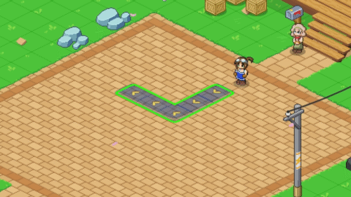 この状態で方向スティックを使うことでコンベアベルトを連続して並べることができ便利です。またRBを押すとコンベアベルトの流れを反転させることができます。最後にAボタンを押して設置完了です。