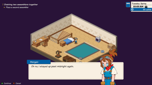 夜中の0時になるとモーガンは疲れ果ててしまい強制的に一日が終わります。しかも本来であれば朝6時に起きて活動できるところを、10時まで寝坊してしまいます。