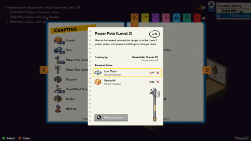 電柱(Power Pole)(Level 2)は高性能な電柱です。より広いエリアをカバーすることができ、より遠い電柱と電線を繋ぐことが可能になります。ただし、Level 2の電柱同士でないと長い距離を電線で繋ぐことはできないので注意です。