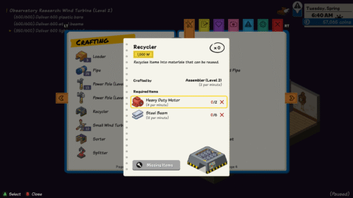 リサイクル可能なアイテムをリサイクラー(Recycler)に投入すると別のアイテムに変換されます。例えばジャンク品のパソコンからはロジックチップ(Logic Chip)とプラスチックくず(Plastic Scraps)が手に入ります。