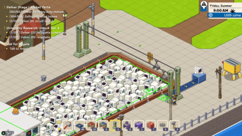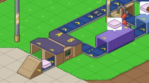 ゲームが進むにつれ街全体が工場のようになってきます。そうなると異なるエリア(画面)へとアイテムを輸送することが増えてきます。このような場合にも異なるエリア間をコンベアで繋ぐことが可能です。方法は単純に画面の境界線までコンベアを延ばせば良いだけですが、コンベアの位置がズレていないかや向きが合っているかに注意しましょう。