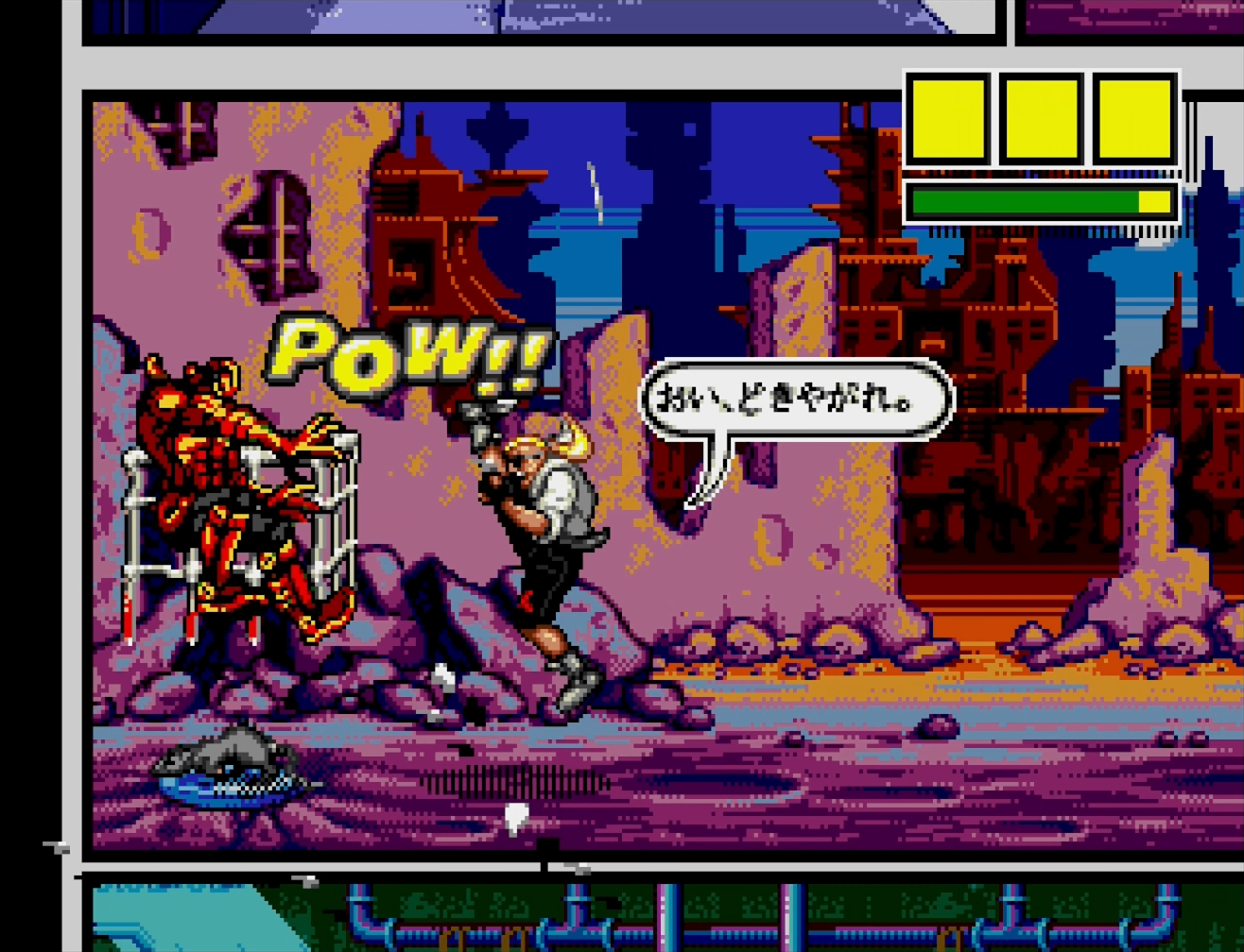 本作はマンガ家のスケッチ・ターナーが自分が描いたマンガ『コミックスゾーン』から飛び出てきた悪役によって、マンガの世界に閉じ込められてしまうという設定になっており、マンガの世界での戦いが繰り広げられます。