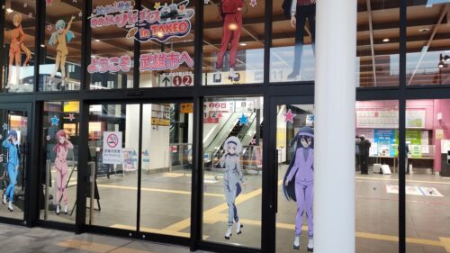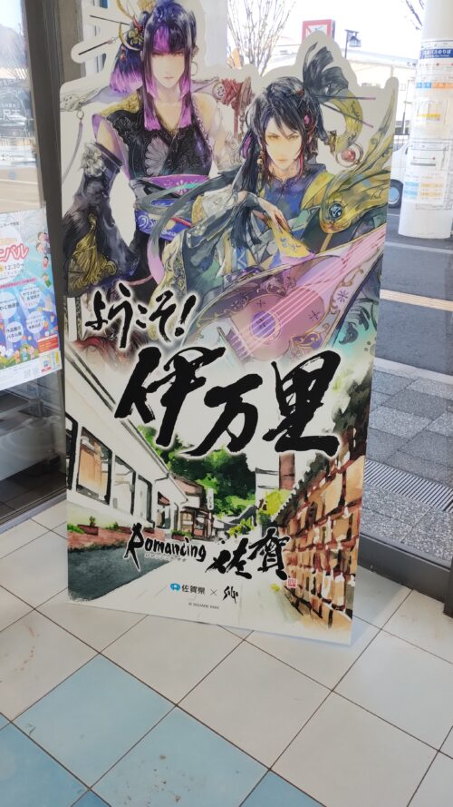 KILN ARITAで冒険ラリー完了報告とレンタサイクルの返却を済まし、有田駅から16:58発の電車(JR)で武雄温泉へ向かいます。有田駅から20分程度なので結構近いですね。武雄温泉駅の入り口では『ゾンビランドサガ』のキャラクター達が歓迎してくれています。