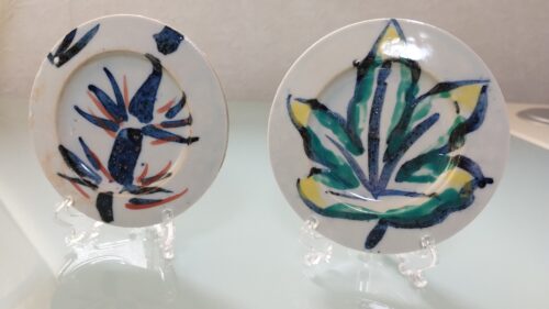 個人的に気に入っているお土産は上の写真のハマというものです。ハマとは焼き物を窯で焼くときに品物の下に敷くトレイのようなもので、それに絵を描いて販売されていました。一般的には商品として販売されないようなものが売っているなんて、焼き物の街ならではですね。