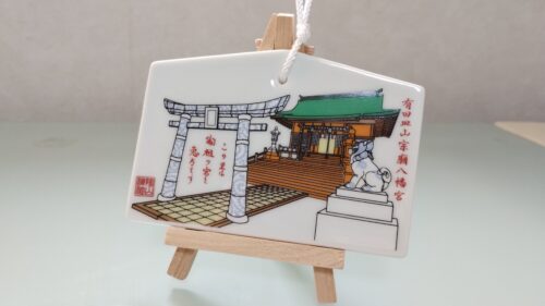 アリタポーセリンラボの近くに陶山神社があります。焼き物の街ならではの陶器製の鳥居は一目の価値ありです。こちらの授与所では有田焼の絵馬を購入することができました。