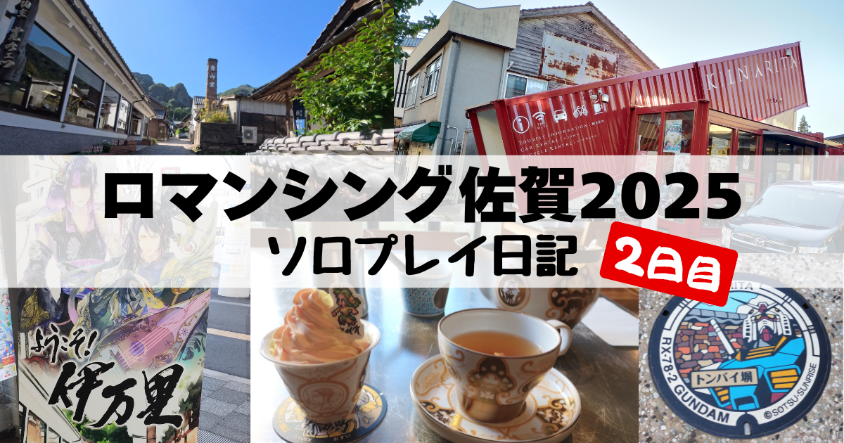 ロマ佐賀2025の旅、2日目は今回追加された新リージョンである伊万里と有田を攻略します。スケジュールとしては午前は伊万里、午後は有田といった感じです。ただ有田は宿泊施設があまりなかったので武雄温泉まで足を延ばして宿泊しました。それでは詳しく紹介していきます。