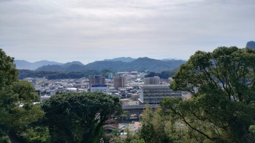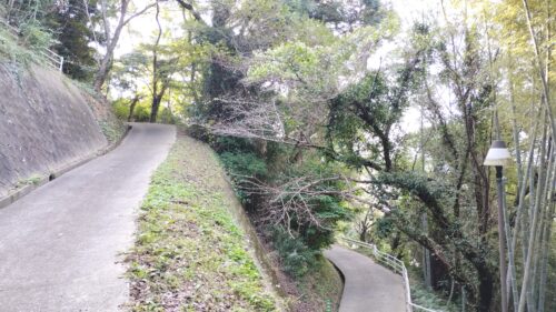 武雄温泉駅の北側にある小高い丘は富岡城跡らしく、頂上部分が丸山公園になっています。武雄温泉楼門から駅方面へ戻る途中ついでに立ち寄ってみました。思いのほか細く薄暗い道を上っていかなくてはならず、夜には絶対に歩きたくない場所です。