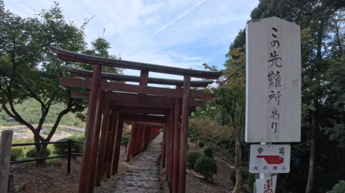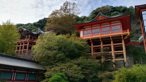 本殿のさらに上、階段をひたすら10分以上登った先に奥の院があります。10分程度とナメていましたが、到着するころにはすっかり息が上がってしまいました。私は見逃してスルーしてしまったのですが貸し出し用の杖が置いてあったので、必要な方は利用すると良いでしょう。