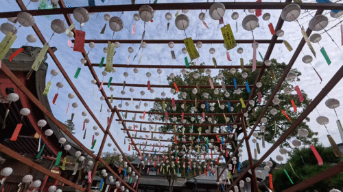 祐徳稲荷神社の境内にはたくさんの風鈴が掛けられていました。これは短冊に願いを描いて奉納する「しあわせ風鈴」というものだそうです。本殿へと続く階段にも風鈴がびっしり掛けられていて幻想的な雰囲気でした。ただ風鈴が飾られているのは夏季限定のようで、10月末に訪れた私はギリギリのタイミングだったのだと思います。