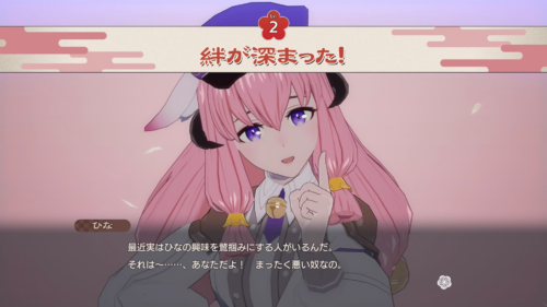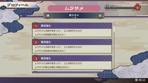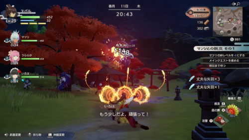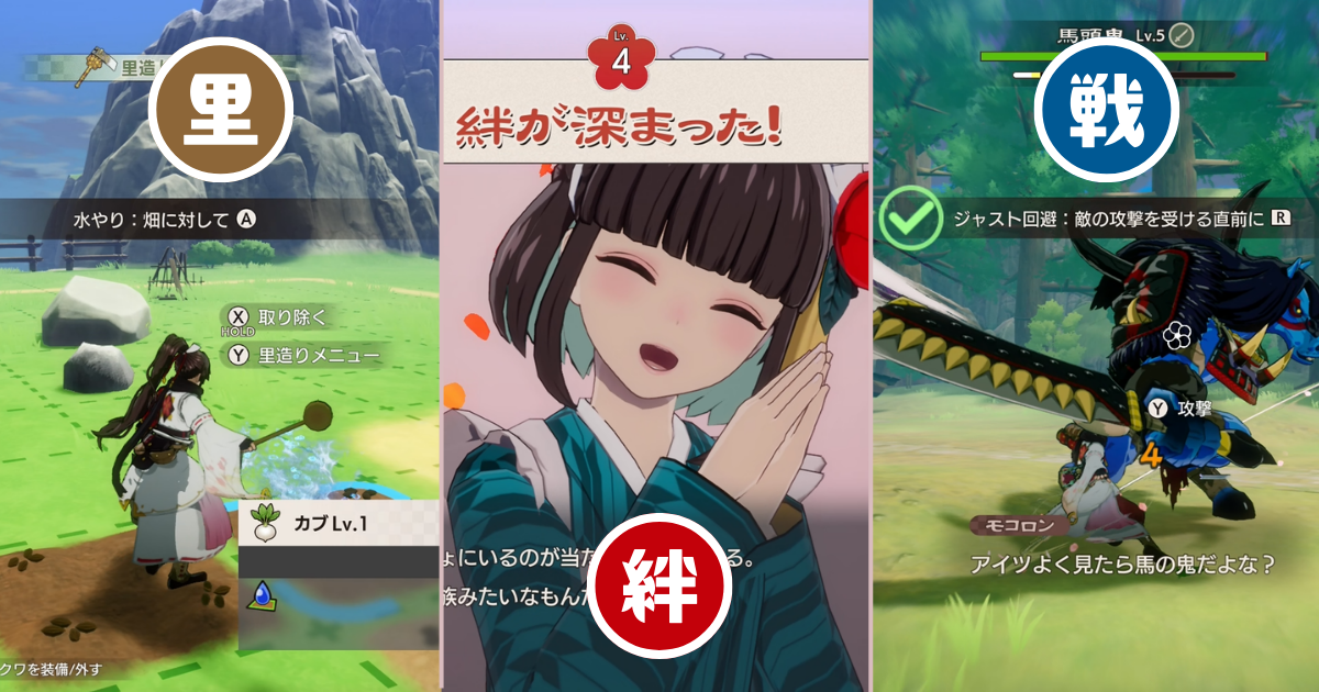 本作の魅力のひとつが仲間達とのコミュニケーションです。里にいる仲間と会話をしたり、一緒に過ごしたりすることで彼らとの絆を深めることができます。各キャラクターにはそれぞれ好みがあり、好きなことをして一緒に過ごすことでより効率的に絆レベルを上げることができます。相手の好みを理解してコミュニケーションを楽しみましょう。