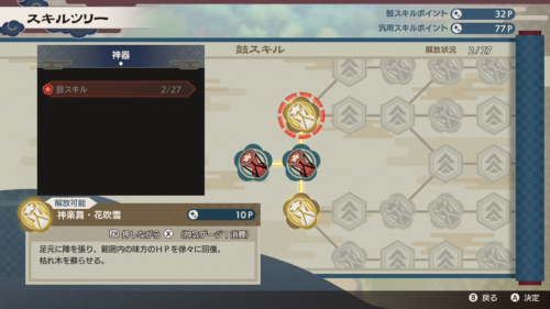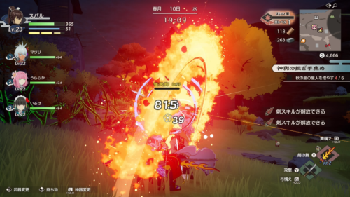 主人公は神気ゲージを持っており、神気ゲージを消費することで神器を用いた強力な舞を使用することが可能です。舞には様々な効果を範囲内に発生させる神楽舞と、強力な属性攻撃で周囲を一掃する神がかりの舞があります。神気ゲージは戦っているうちにどんどん溜まっていきますので、あまりケチらずに使っていって大丈夫です。