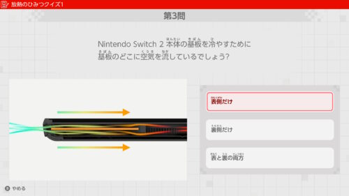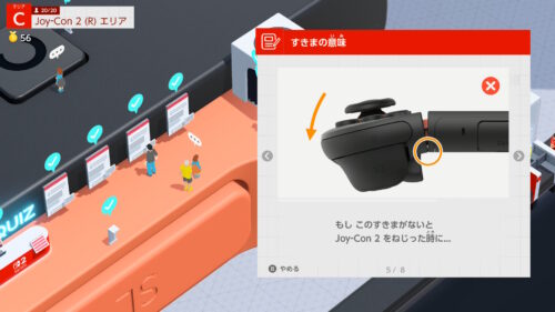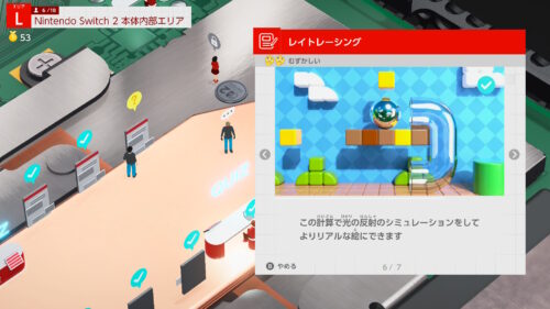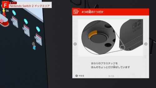 ゲーム内では様々な場所でSwitch 2にまつわる秘密を知ることができるパネル展示や、それに関するクイズがあります。秘密の内容はバラエティ豊かで、比較的誰でも理解しやすい簡単なものから、電磁ノイズや熱対策といったマニアックなものまで様々。「なぜこの部分がこうなっているのか」というような開発秘話的な内容まであり、他では知ることができないディープな情報を得ることができます。これらの秘密を知ると、本当に良く考えてこだわり抜いてSwitch 2を開発されたんだなと実感でき、任天堂のモノづくり精神に脱帽です。